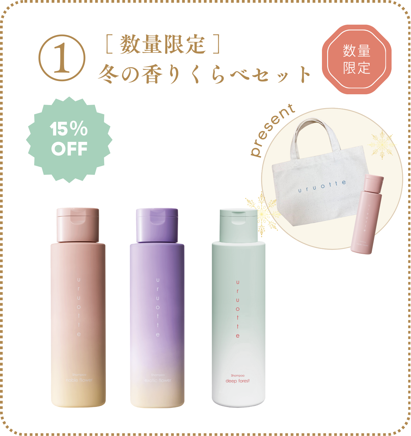 香りは心の健康のバロメーター。バスタイムに“香りのケア”をとりいれて、毎日をもっと豊かに、かろやかに。 初夏のさわやかな花畑、エキゾチックな南国のリゾート、静かに澄んだ冬の森。 冬の定番ディープフォレストも加わって、3つの香りをぜんぶ楽しめるシャンプーセットです。