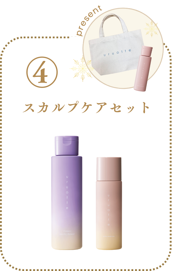 新しい年の始まりは一歩進んだヘアケアを始めるにはうってつけ!髪の根元にダイレクトにアプローチするスカルプエッセンス、美髪をはぐくむシャンプー&洗い流さないトリーメント、白髪をエレガントにカモフラージュする1DAYリタッチヘアマスカラ。数量限定のお得なセットです。